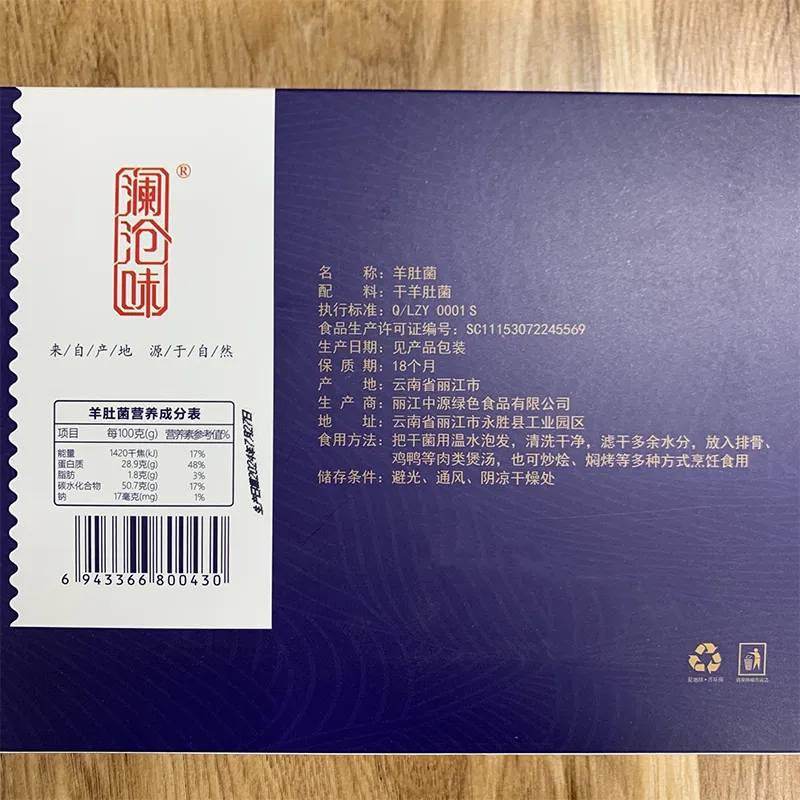 | Баранья губка (Morchella) (упаковка в коробке) | 100 г/пакет | Ланьцанвэй | Баранья губка (Morchella), являясь ценным представителем семейства и рода Morchellaceae, занимает важное место среди съедобных грибов благодаря своей уникальной привлекательности. Ее внешний вид легко узнаваем: поверхность шляпки покрыта складками, напоминающими бараний желудок, с рельефной текстурой, что делает гриб особенным и придает ему узнаваемое название «баранья губка».