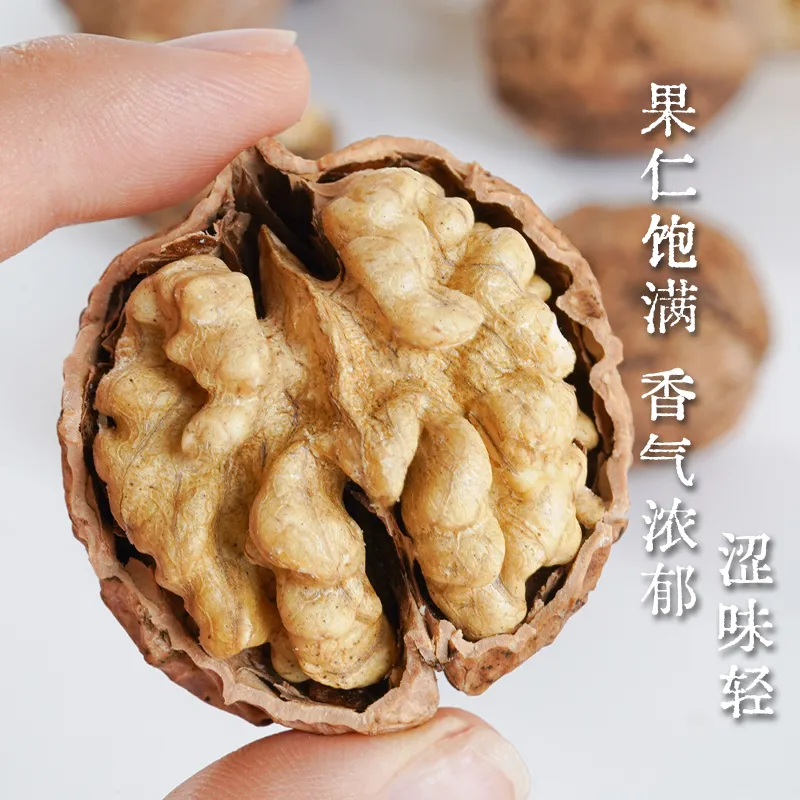 Среди множества сортов грецких орехов Юньнани, отобранные орехи 103 считаются безусловными «лучшими учениками», завоевавшими любовь многих благодаря превосходному качеству. Их особенность заключается в том, что их можно есть прямо с тонкой кожурой: в отличие от обычных орехов, где кожура при употреблении бывает горьковатой, у орехов 103 скорлупа и ядро идеально гармонируют, создавая естественную сладость без малейшей горечи. При жевании ощущается и насыщенный вкус ядра, и тонкая волокнистая структура скорлупы, что делает употребление удобным и приятным без лишних усилий.