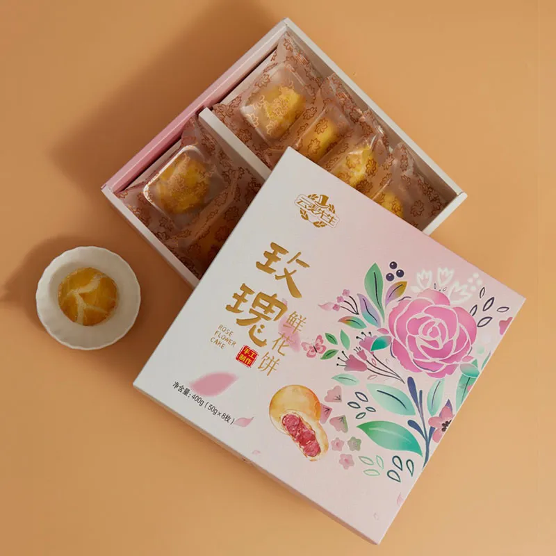 | Классические свежие цветочные пирожные — 50 г × 8 шт. в коробке | 50 г × 8 шт. в коробке | Мистер Юньмай (Yún Mài Xiānshēng) | Легенда о вкусе свежих цветочных пирожных Юньнаня началась более 300 лет назад, ещё в эпоху династии Цин. В то время мастера использовали высококачественные местные розы Юньнаня в качестве основного ингредиента и создали свежие цветочные пирожные. Их уникальный аромат и нежная текстура поразили современников, а благодаря выдающемуся качеству они стали дворцовым десертом, любимым императором Цяньлуном, украшая столы императорских банкетов. Эта идея «встраивания цветов в пищу» заложила прочную культурную основу продукта.