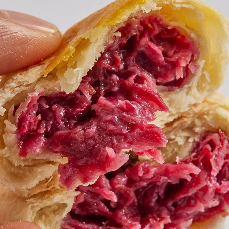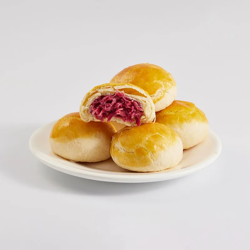 Со временем традиция приготовления и мастерство пирожных вышли из дворца и передавались из поколения в поколение среди народа Юньнаня, сохраняя живость и актуальность до наших дней. Современные свежие цветочные пирожные продолжают придерживаться традиций: отбираются свежие съедобные розы Юньнаня, в период цветения тщательно выбираются полные и ароматные лепестки, которые проходят очистку и маринование для сохранения аромата и питательных веществ. Тесто подвергается многократной обработке для слоёности, складывается и вымешивается, после выпечки становится золотистым, хрустящим и тает во рту. Начинка на основе лепестков роз смешивается с умеренным количеством сахара, сладкая, но не приторная. При укусе тесто крошится, начинка мягкая и ароматная, насыщенный розовый аромат наполняет рот, а содержащиеся в розах витамины и антоцианы обеспечивают ухаживающий и омолаживающий эффект. Будь то для повседневного чаепития или в качестве подарка, эти пирожные несут в себе 300-летнее наследие вкуса и стали неотъемлемой классикой десертной культуры Юньнаня. |