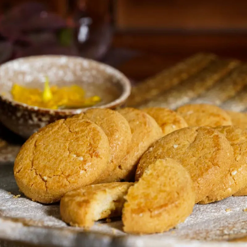 Печенье «Тао Су» — классический традиционный десерт, который привлекает внимание уже своим внешним видом. Свежевыпеченное печенье имеет аппетитный золотистый цвет, поверхность слегка блестит от масла, края слегка поджаренные, что словно рассказывает о заботливом процессе выпечки. При приближении к десерту ощущается насыщенный аромат молока и богатый запах персиковых косточек, которые гармонично сочетаются, распространяя аромат и вызывая желание немедленно попробовать лакомство.