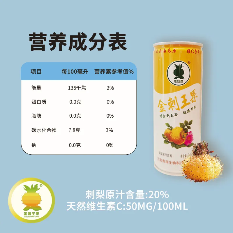 245 мл × 12 бутылок | Золотой колючий крыжовник | Гуйчжоуский колючий крыжовник — редкий фрукт, произрастающий в уникальных диких районах западного плато провинции Гуйчжоу. Здесь средняя высота над уровнем моря, достаточно солнечного света и плодородная почва создают идеальные природные условия для его роста. Будучи плодом растения семейства розовых (Rosa roxburghii), он отличается уникальной формой, насыщенным вкусом и высокой пищевой ценностью, став ярким представителем региональных продуктов Гуйчжоу.
