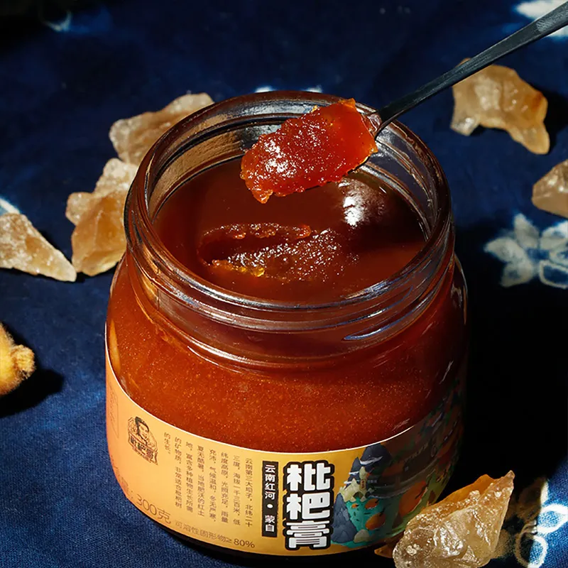 | Юньнаньский мёд из мушмулы Монцзы 300 г | 300 г | Мушмульный брат (Pípa Gē) | Мёд из мушмулы — это густой сироп, сочетающий в себе пищевую и оздоровительную ценность, приготовление которого требует тщательного подбора ингредиентов и внимательного соблюдения технологии. Основой служит свежая мякоть мушмулы, к которой добавляются листья мушмулы, также обладающие лекарственными свойствами. Для улучшения вкуса и смягчения сухости добавляют тростниковый сахар или мёд, а в некоторых рецептах включают китайское лекарственное средство чуанбей. Смесь медленно варится на слабом огне до концентрации, в результате чего готовый продукт излучает лёгкий травяной аромат, сладкий, но не приторный, сохраняет натуральный фруктовый вкус мушмулы и одновременно обладает питательными свойствами фруктов и лекарственных растений.